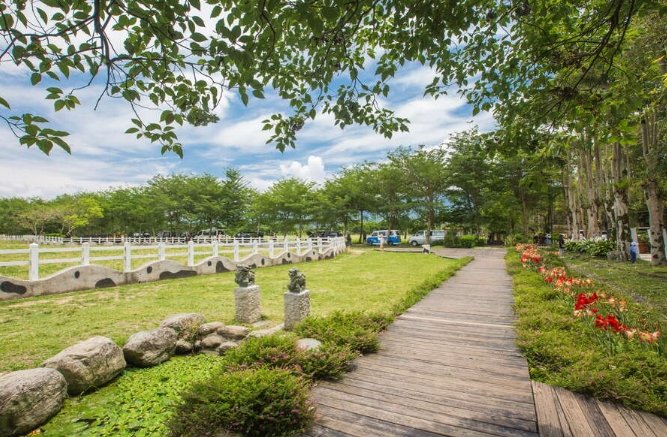 - 休憩涼亭桌椅: 分布各處的木造桌椅區,買了食物找個位子坐下,享受悠閒時光。