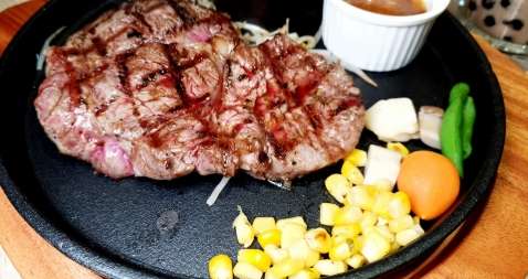 - 介紹: 跟前面介紹的牛室有點像,也是走「排餐+自助吧」吃到飽路線。點任一主餐牛排,旁邊的自助吧就任你享用。自助吧內容豐富:沙拉、濃湯、麵包(有時是蒜香麵包)、炸物(薯條、雞塊)、水果、甜點(蛋糕、布丁)、冰淇淋(品牌不定)、飲料。我覺得他們的羅宋湯蠻好喝的,料也多。環境舒適,有點美式風格。服務OK。想吃排餐又想吃點自助吧小吃的人,這是另一個土城吃到飽的選擇。兩家可以比較看看。